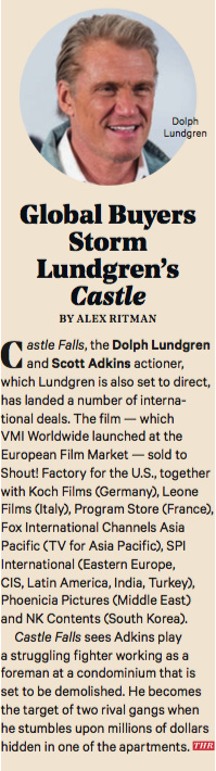 Castle Falls, the Dolph Lundgren and Scott Adkins actioner, which Lundgren is also set to direct, has landed a number of international deals and found a home in the U.S.
