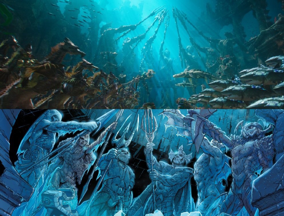 3) King Nereus of the kingdom of Xebel and his men ride sea dragons. Director James Wan wanted to create these fearsome creatures, Safran notes, as a way of subverting the comic image of Aquaman riding a seahorse.